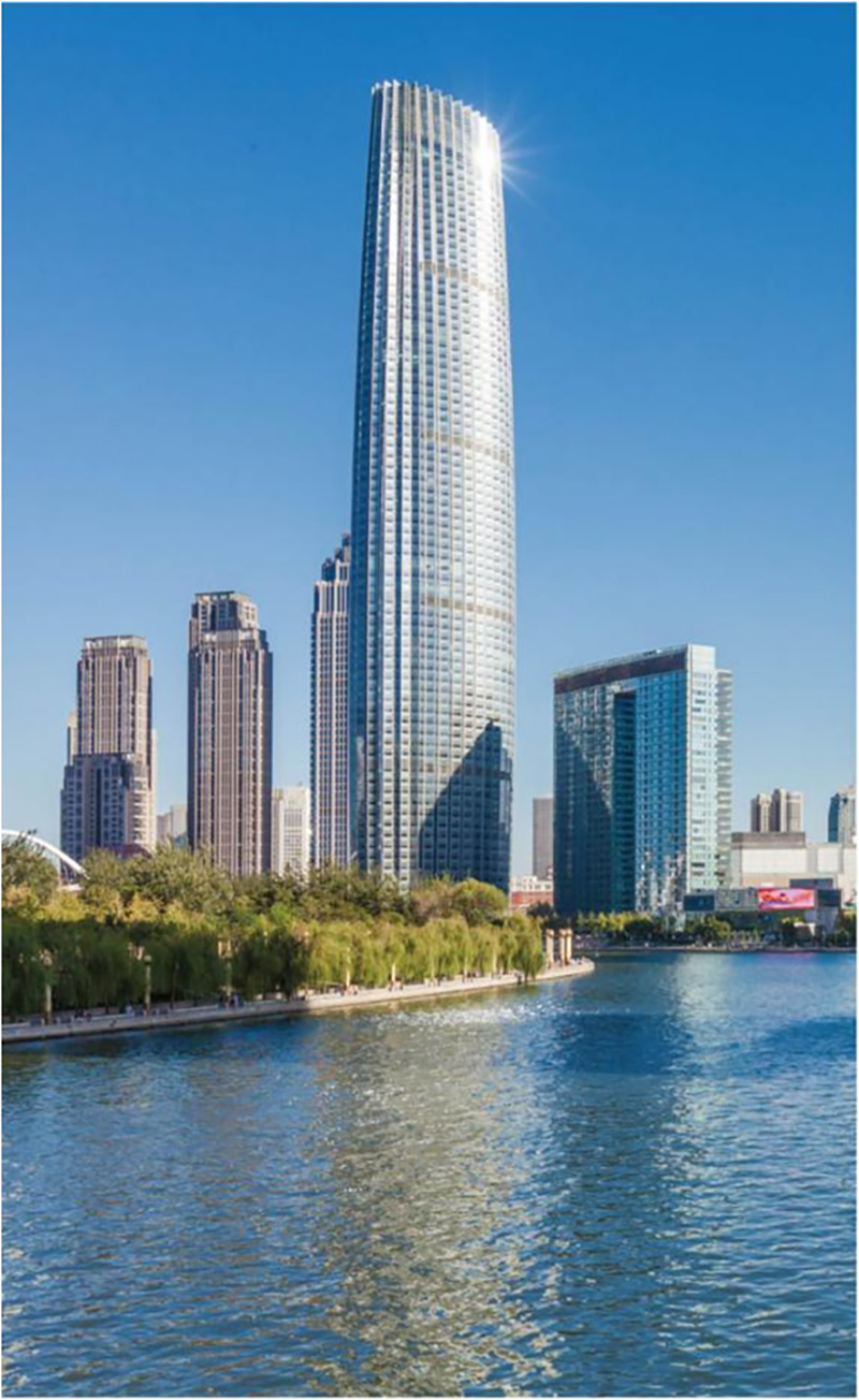 津塔是天津市新的地標式建筑,津塔高336.9米,并在中國已建成的摩天大樓中排名第7位,在世界已建成的摩天大樓中排名第25位,總面積約34.4萬平米,混合結構,最高75層,336.9米高,其中鋼結構單體最大面積20萬平米。