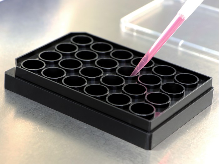 黑色24孔板,孔底為#1.5H玻璃蓋玻片,適用于利用TIRF全內(nèi)反射熒光顯微鏡和超分辨顯微鏡進(jìn)行高通量篩選。