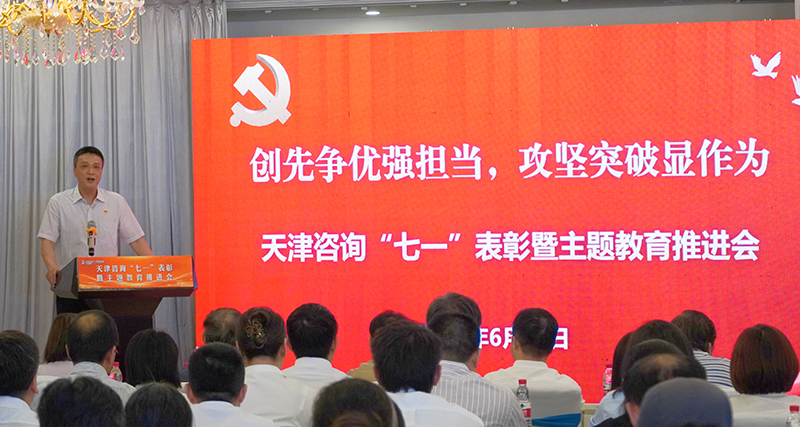 6月30日下午,天津工程咨詢有限公司黨委召開“創(chuàng)先爭優(yōu)強擔當,攻堅突破顯作為”—天津咨詢“七一”表彰暨主題教育推進會。集團副總經(jīng)濟師、調(diào)研員,天津咨詢領導班子、部門經(jīng)理及本部全體黨員,各事業(yè)部、子公司領導班子、部門負責人、黨務干部及黨員、受表彰先進代表現(xiàn)場參加會議。系統(tǒng)全體黨員同步線上收看大會視頻直播。公司黨委委員、副總經(jīng)理朱震主持會議。