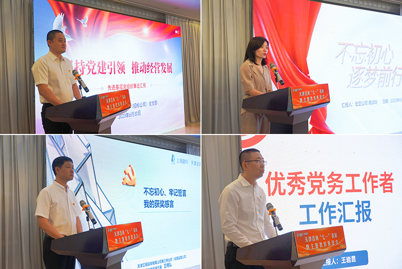 優(yōu)秀共產(chǎn)黨員代表第一事業(yè)部(宏亞公司)高淑玲、第三事業(yè)部(成套監(jiān)理公司)王博弘,優(yōu)秀黨務工作者第二事業(yè)部(招標公司)王巖昆,先進基層黨組織天津咨詢第二事業(yè)部(招標公司)黨支部書記于浩鵬分別作了交流發(fā)言,表示將牢記初心使命,把榮譽作為新的起點,繼續(xù)發(fā)揮好黨組織戰(zhàn)斗堡壘和黨員先鋒模范作用,為推動天津咨詢高質(zhì)量發(fā)展作出新的貢獻。