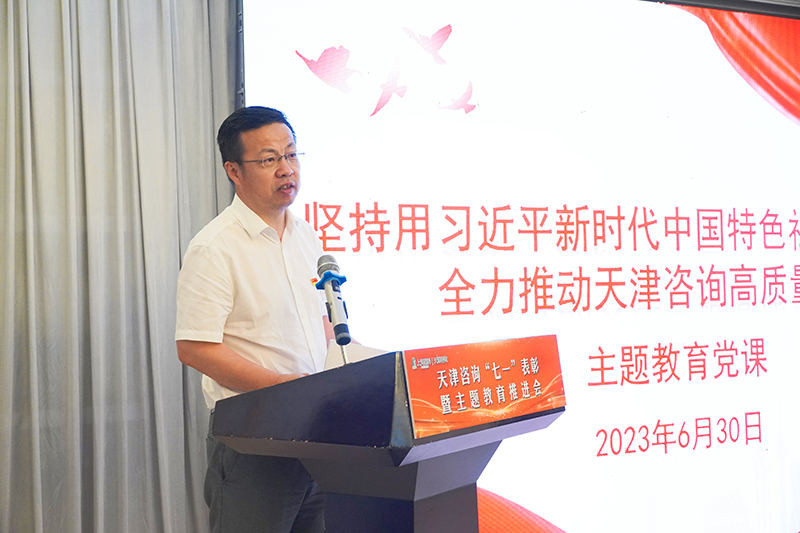 在總結講話中,孫亞龍圍繞完成全年黨建、經(jīng)濟工作目標任務,提出三點要求:一是學習先進榜樣,汲取奮進力量。廣大黨員干部要以先進典型為榜樣,學習他們迎難而上、擔當作為、奮力拼搏的精神,在全公司上下形成學先進、趕先進、當先進的濃厚氛圍。各級黨員干部要發(fā)揮示范帶頭作用,敢于從難處突破,堅持從實處發(fā)力,以自身的敢擔當善作為,為推動天津咨詢高質(zhì)量發(fā)展作出我們新的更大的貢獻。二是堅持問題導向,抓實主題教育。針對主題教育中發(fā)現(xiàn)的問題,各事業(yè)部、子公司要提升解決問題的主動性,把主題教育同推動天津咨詢業(yè)務轉(zhuǎn)型升級、年度各項重點任務、為群眾辦實事、一支部一實事等工作結合起來,抓實整改落實,通過“問題銷號”機制,做好主題教育“后半篇文章”,真正將主題教育成果轉(zhuǎn)化為推動企業(yè)發(fā)展的強大動力。三是圍繞中心工作,推進高質(zhì)量發(fā)展。要進一步認清形勢、理清思路,堅定發(fā)展信心,加快轉(zhuǎn)變觀念,貫徹落實好集團及公司黨委的各項安排部署。要進一步壓實全面從嚴治黨主體責任,不斷提升基層黨組織組織力,創(chuàng)建“一支部一特色一品牌”黨建特色,促進黨建與生產(chǎn)經(jīng)營深度融合,為實現(xiàn)全年工作目標任務提供組織保障。要全面梳理今年的經(jīng)營任務完成情況及“十四五”規(guī)劃中期評估發(fā)現(xiàn)的問題,進一步強化與集團深度融合,在業(yè)務協(xié)同、區(qū)域開拓、聯(lián)合市場開發(fā)上共同發(fā)力,扎實推進各項既定目標任務的完成,為天津咨詢高質(zhì)量發(fā)展打下良好基礎。