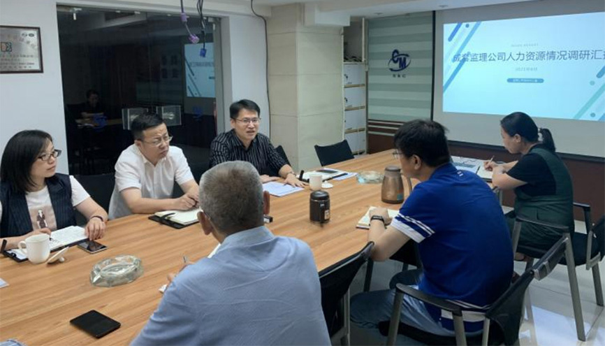 8月25日-26日,天咨公司黨委書記、常務副總經理孫亞龍,財務總監楊柳與公司人力資源部有關人員,先后到所屬 4 家子公司開展人力資源工作調研。所屬各公司領導班子、人力資源工作部門負責人參加了座談會。