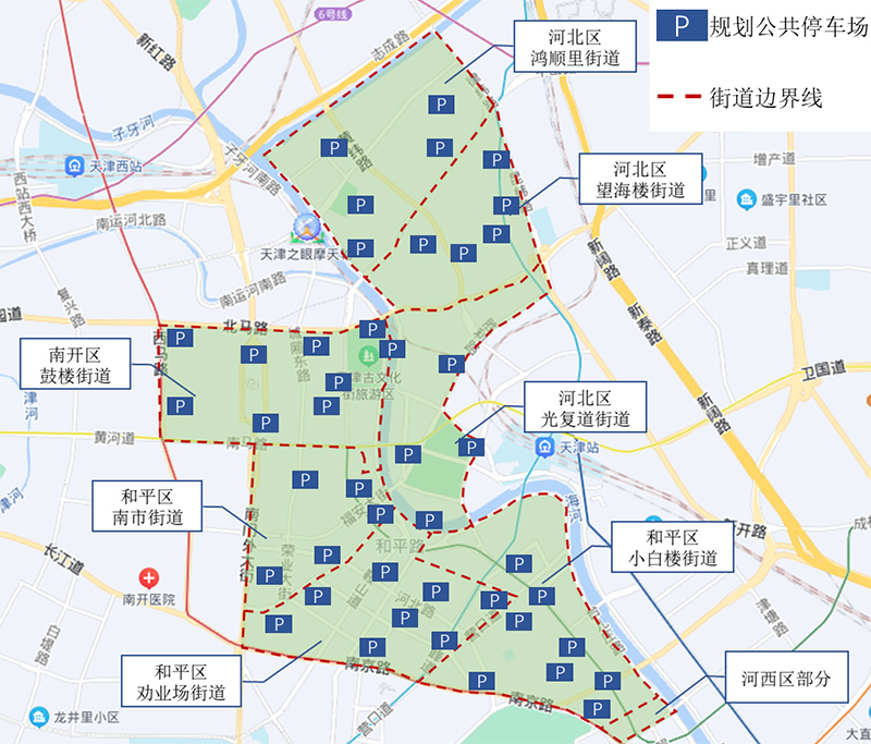 天津市中心城區核心區綠色交通改善工程及規劃停車場點位圖