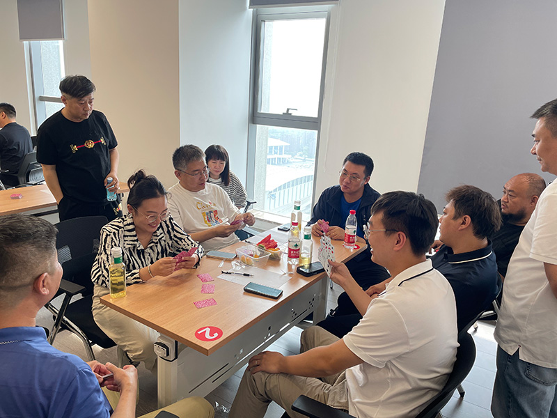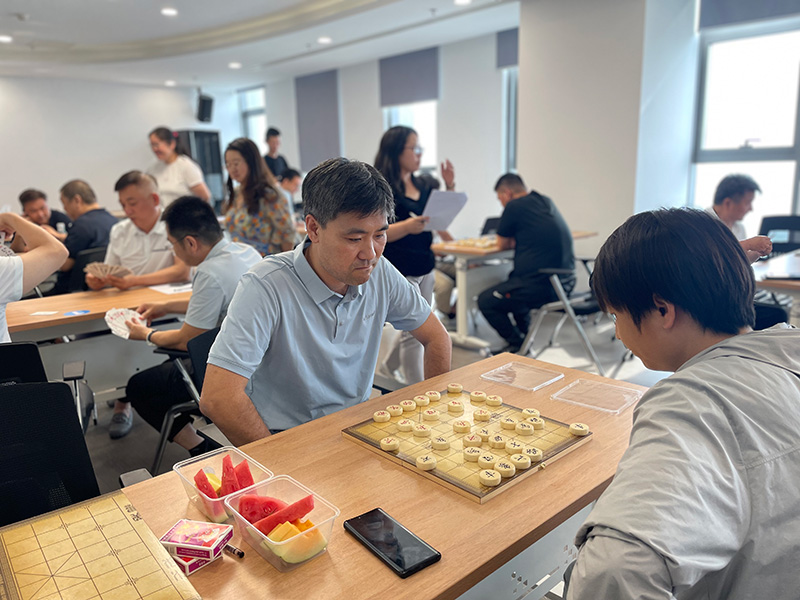 “楚河對漢界、摜蛋斗地主”。棋牌比賽中,大家“切磋棋藝,以牌會友”,個個沉著冷靜,思路敏捷。在楚河漢界之間縱橫車馬、調兵遣將;在方寸撲克之中,聚精會神,沉著應戰,憑借默契的配合,讓“戰局”高潮迭起。