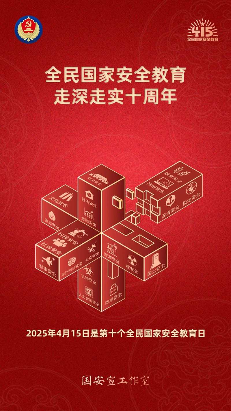 2025年4月15日是第十個(gè)全民國(guó)家安全教育日,今年的主題是:全民國(guó)家安全教育,走深走實(shí)十周年。下面我們一起學(xué)習(xí)相關(guān)知識(shí)吧!