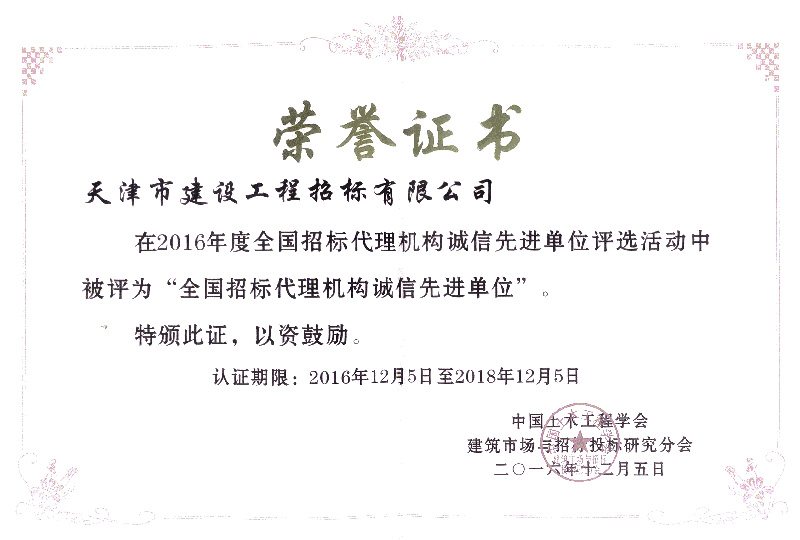 2016年度全國(guó)招標(biāo)代理機(jī)構(gòu)誠(chéng)信先進(jìn)單位