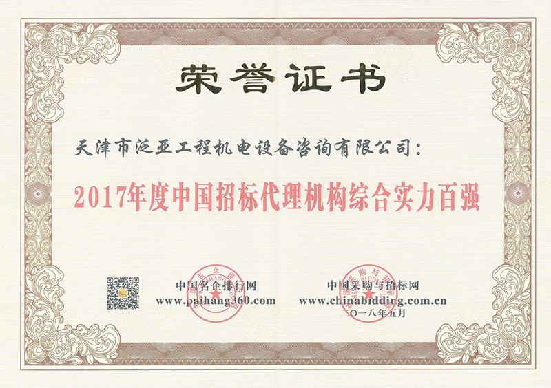 2017招標(biāo)代理綜合實力百強(qiáng)