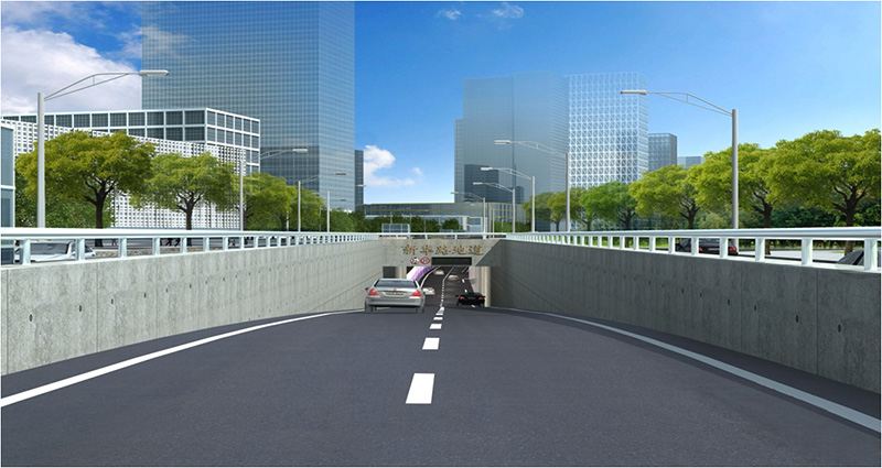 該項目選址于于家堡金融區新華路,建設單位為天津濱海新城建設發展有限公司,本項目為新華路及其下方長隧道工程二期,全長約1010米,主要建設內容為道路、地道、排水、照明、交通以及隧道裝飾和道路綠化等工程,項目總投資9.3億元。